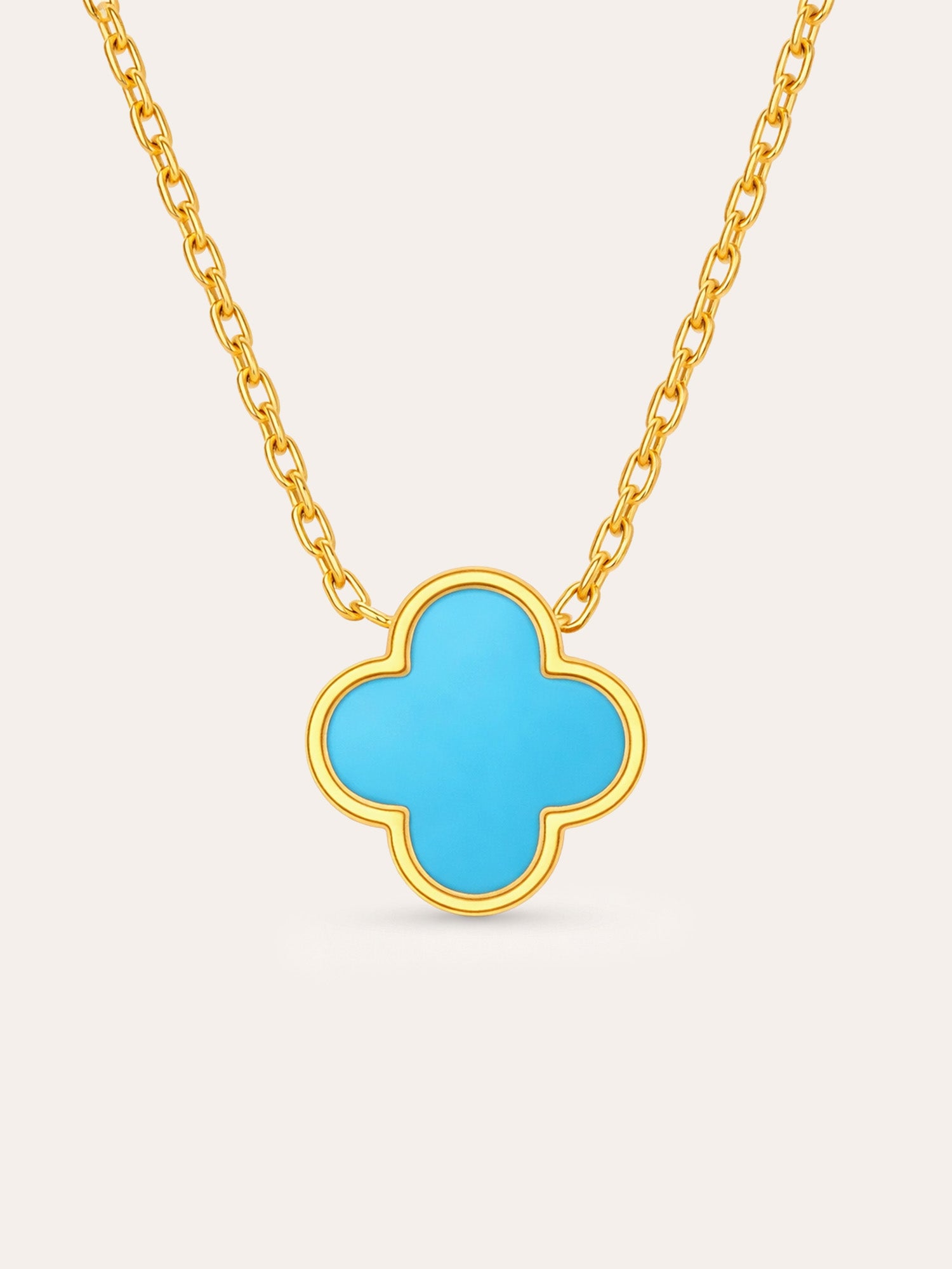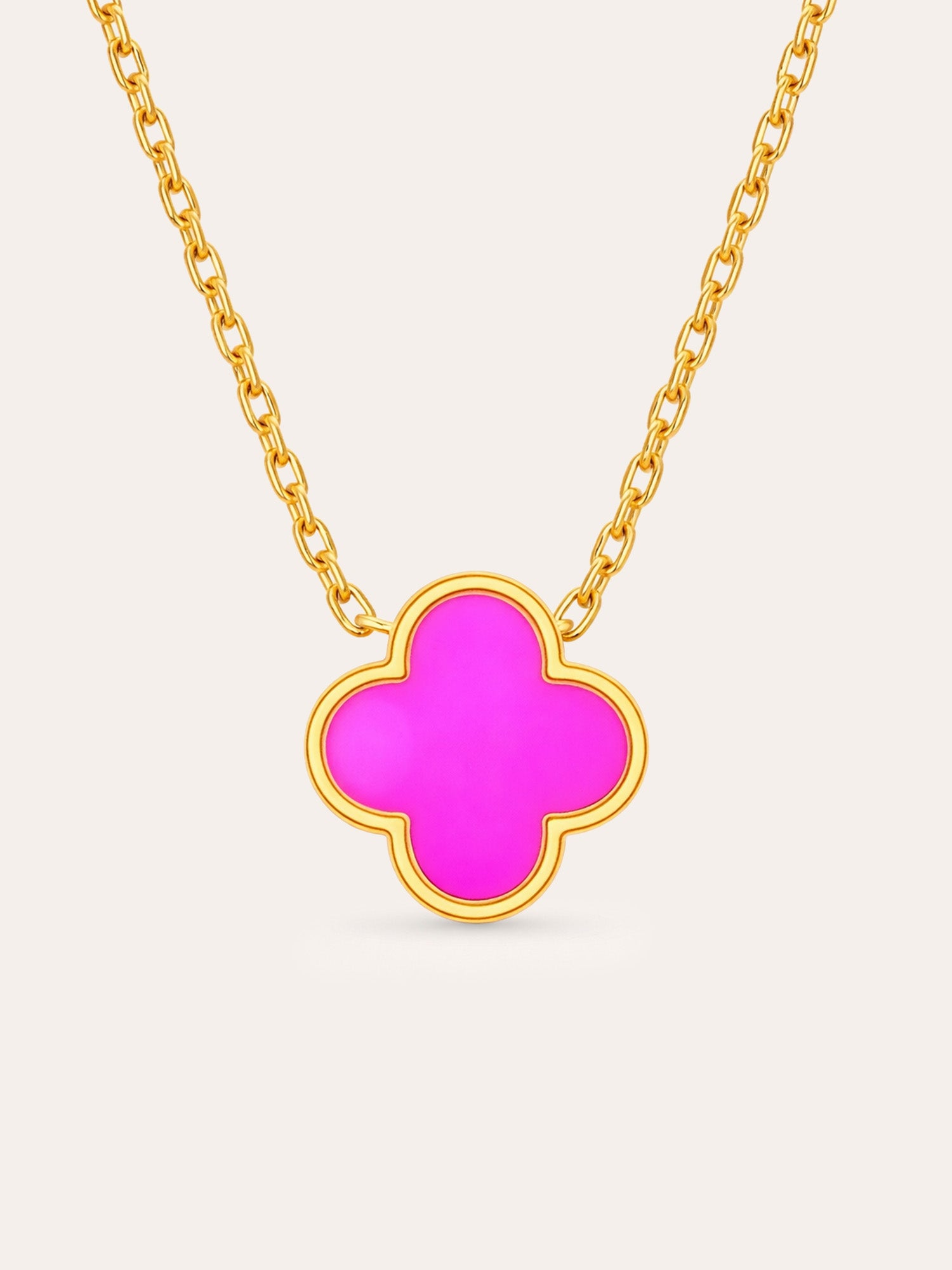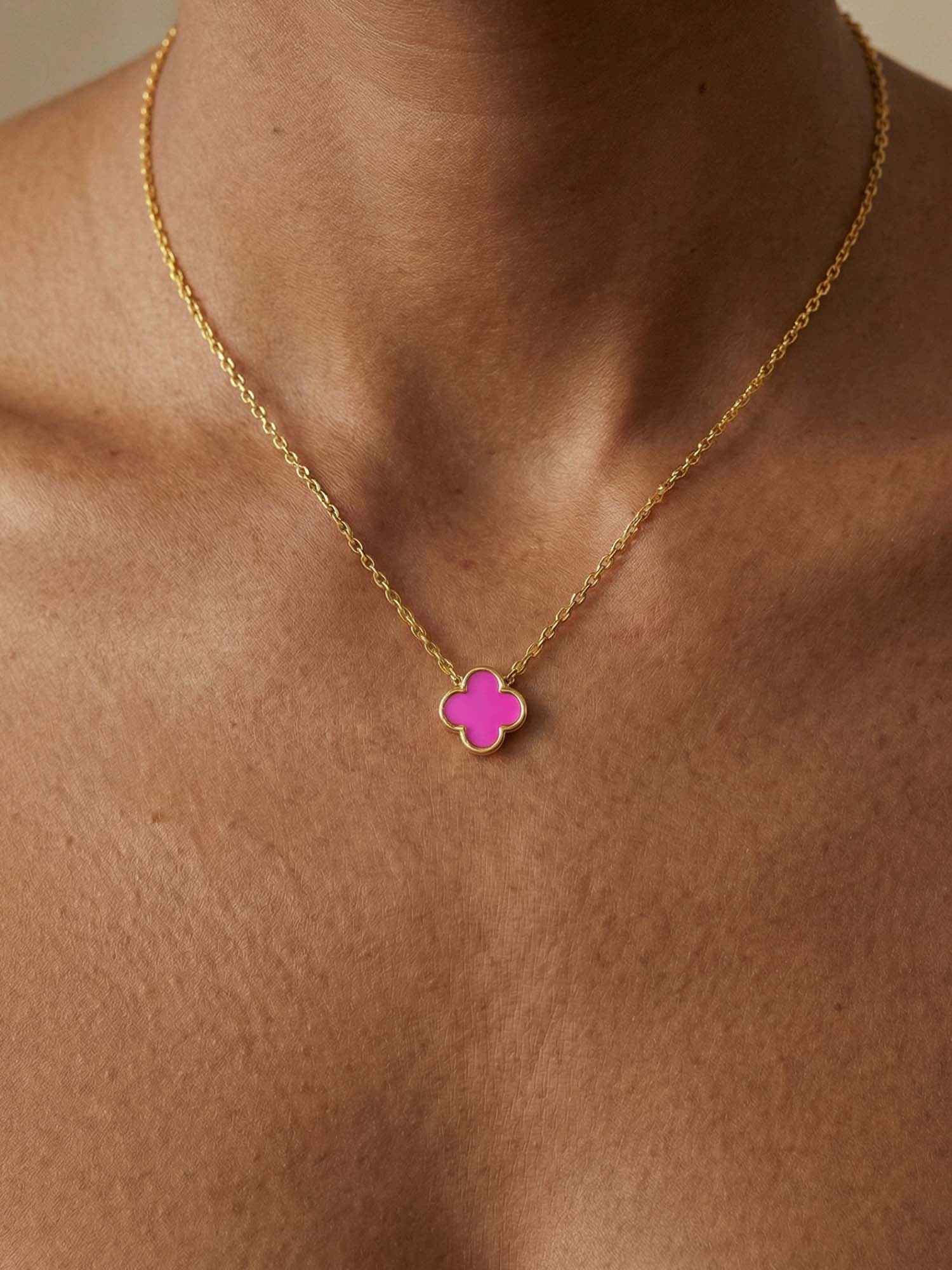 Unsere Clover Charm Halskette kombiniert elegantes Design mit einer Prise Symbolik. Der filigrane Kleeblatt-Anhänger steht für Hoffnung, Liebe, Glück und Vertrauen – eingebettet in glänzendes Gold und veredelt durch farbenfrohe, glatte Inlays mit edelsteinähnlichem Schimmer.