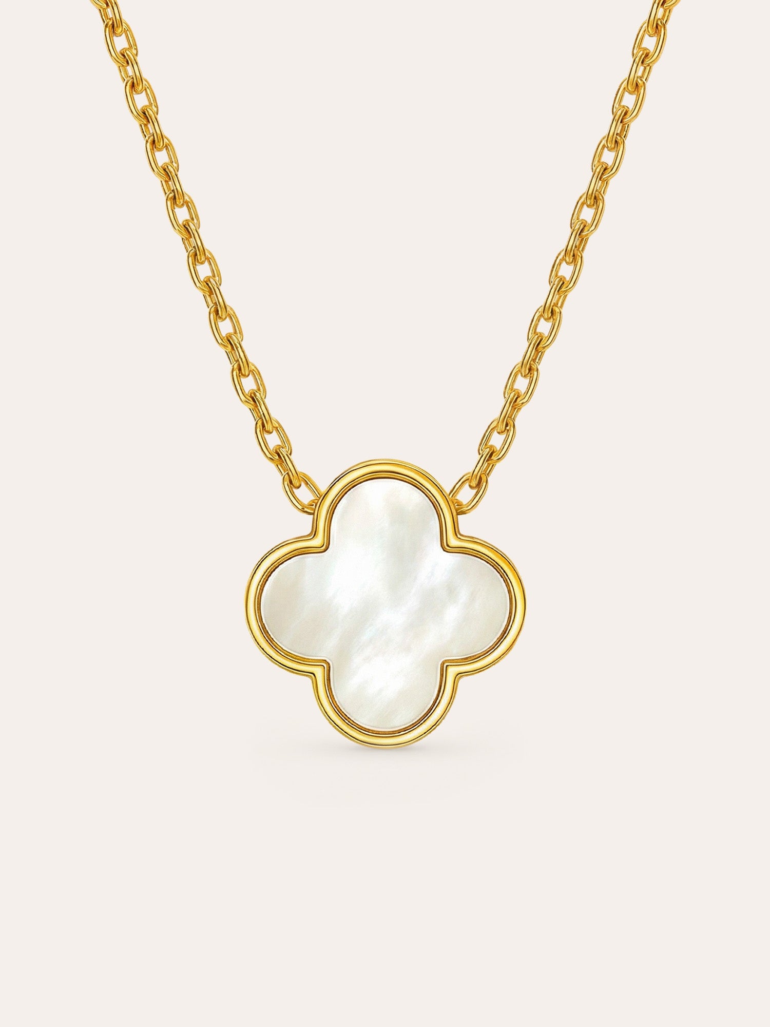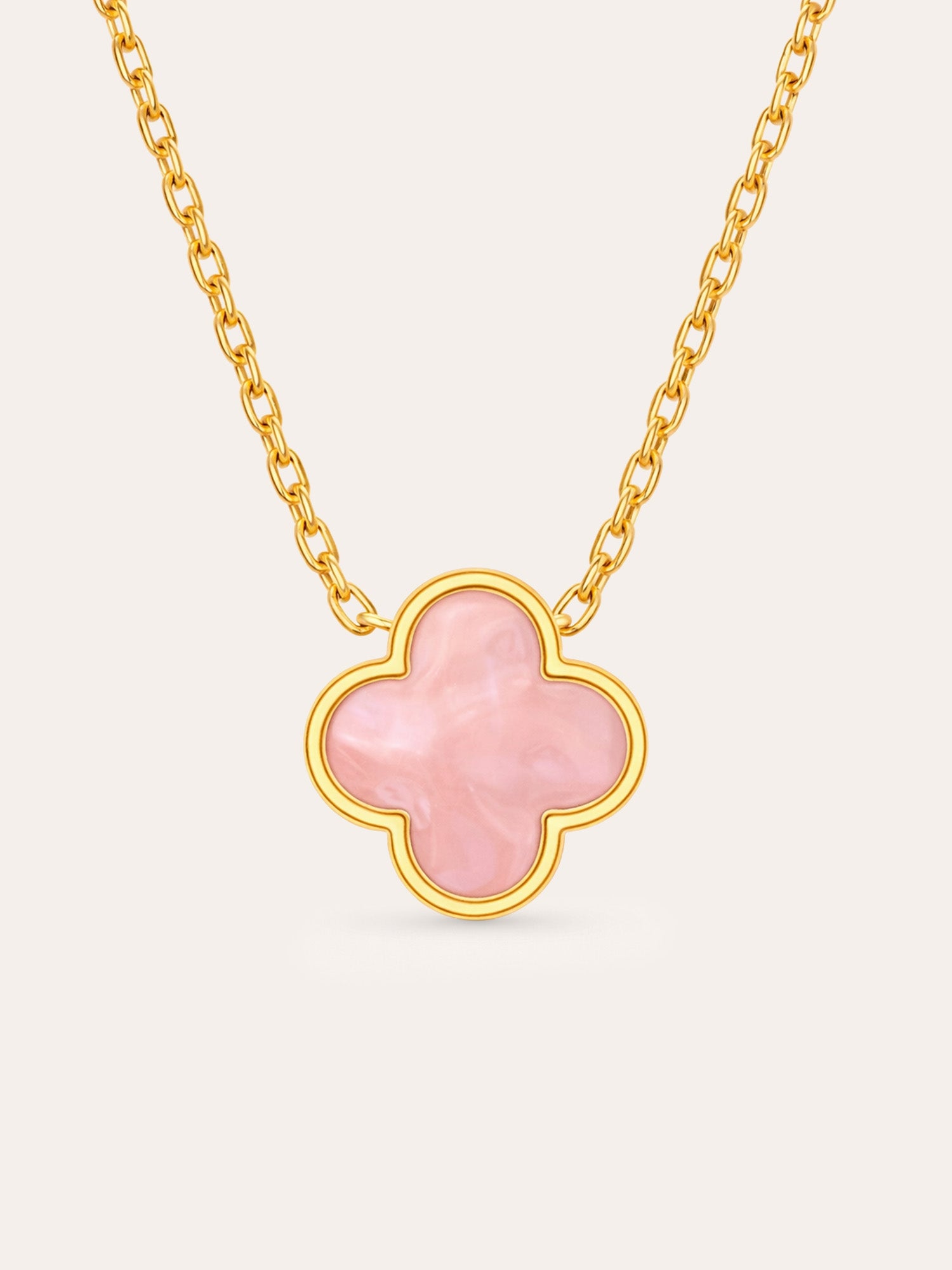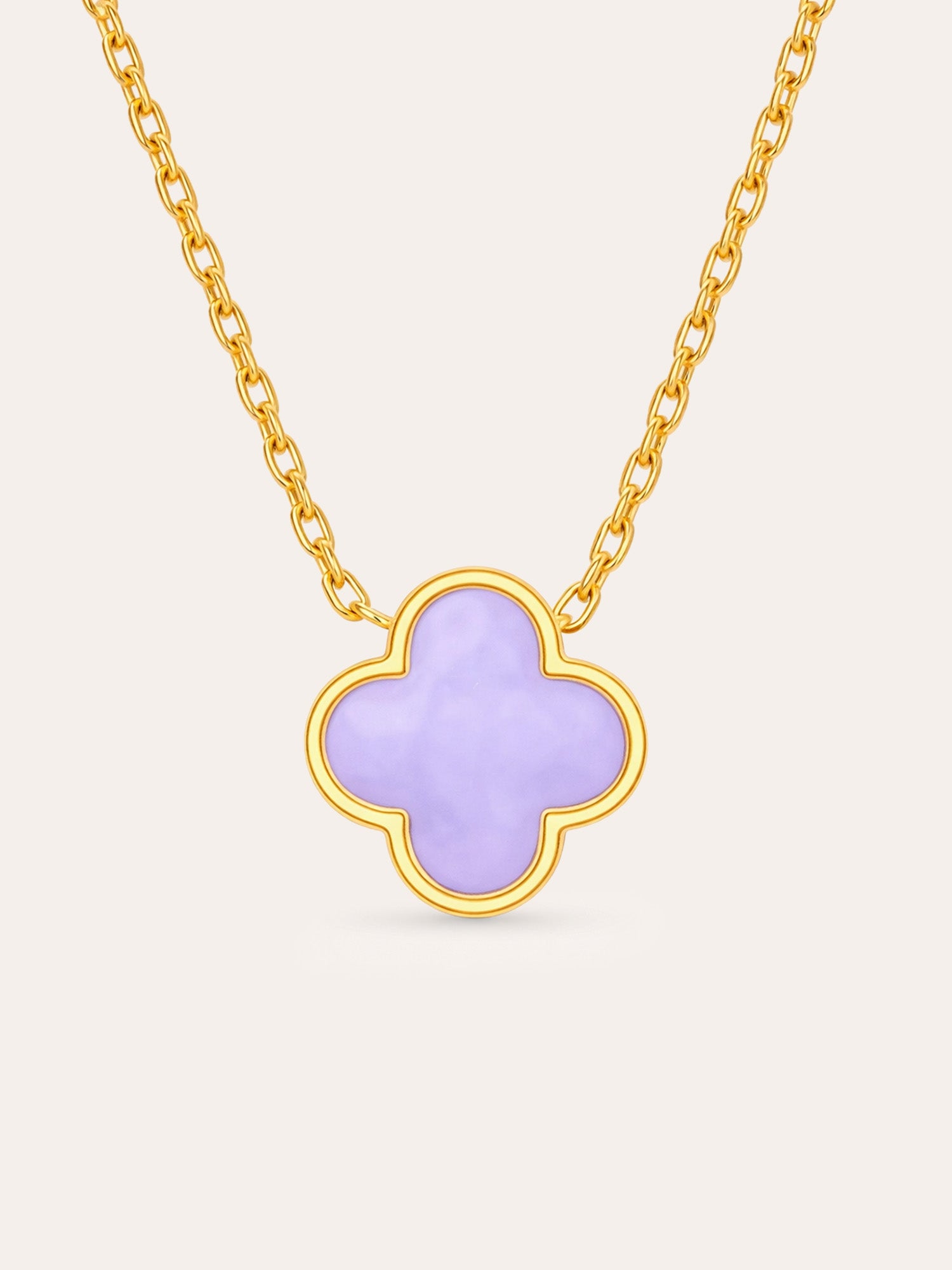 Unsere Clover Charm Halskette kombiniert elegantes Design mit einer Prise Symbolik. Der filigrane Kleeblatt-Anhänger steht für Hoffnung, Liebe, Glück und Vertrauen – eingebettet in glänzendes Gold und veredelt durch farbenfrohe, glatte Inlays mit edelsteinähnlichem Schimmer.